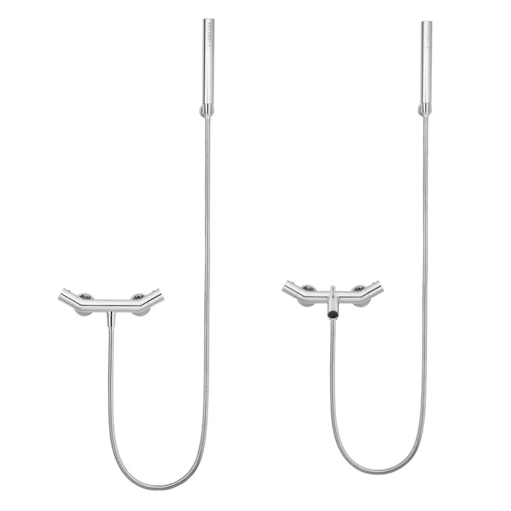 有別於一般淋浴龍頭因體積較為龐大而形成的笨重感,此水龍頭跳脫以往的設計結構考量,用最少的材料設計出有別予以往的輕盈體積,簡約俐落的造型增加浴室空間設計之搭配性。