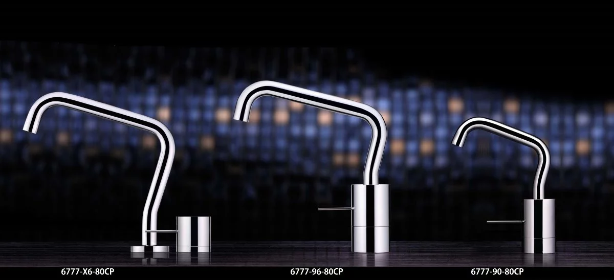 檯面水龍頭:特殊的內部結構,改善原本把手開關與龍頭本體需要錯開或獨立的缺點,節省了空間與材料,也去除了把手蓋容易藏污納垢的縫隙與複雜的線條,讓整體外觀更為簡單、高雅。