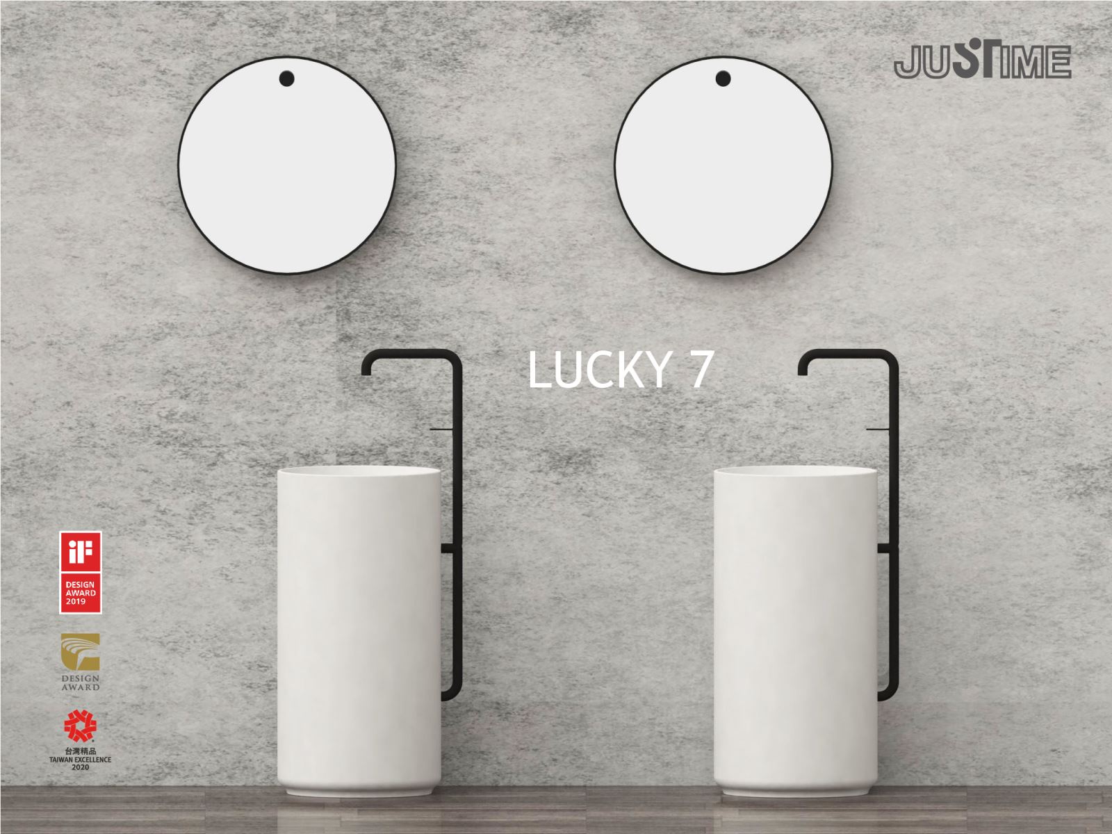 Lucky 7系列簡約的風格,以圓柱造型簡化開關和出水口的零件與外觀的線條,讓整體外觀更為簡單、高雅,同時降低了生產的時間與成本。獨特的把手設計,使用方便,不會有塗抹肥皂或手濕而造成無法轉動的問題。出水口能360度旋轉,因應各種狀況做調整。Lucky 7系列不僅能裝飾居家空間;更能為人們帶來好運,創造希望,典藏幸福。