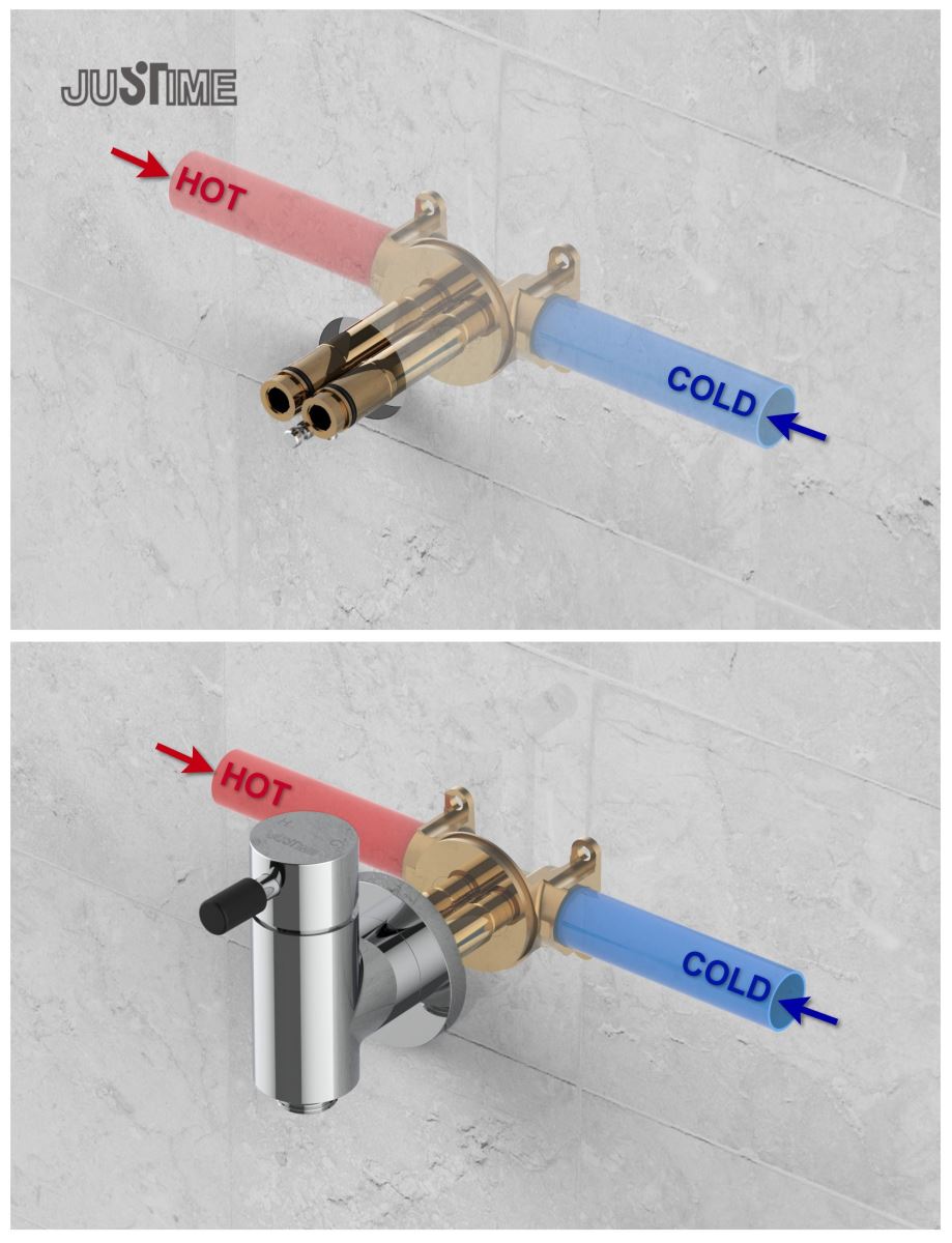 場域通用方面,模組化的J系列埋壁水路搭配逆止閥使模組成為水管的一部分,可以共用任何巧時代衛浴的J系列埋壁式混溫閥龍頭;其次,Function 1 龍頭本體不同場域間的用水皆可以此延伸,以同一款龍頭本體為發展,搭配出水管、花灑與洗滌器等不同配件,發展成不同功能的產品,適用於面盆、淋浴、臀洗、廚房等各種使用場合。