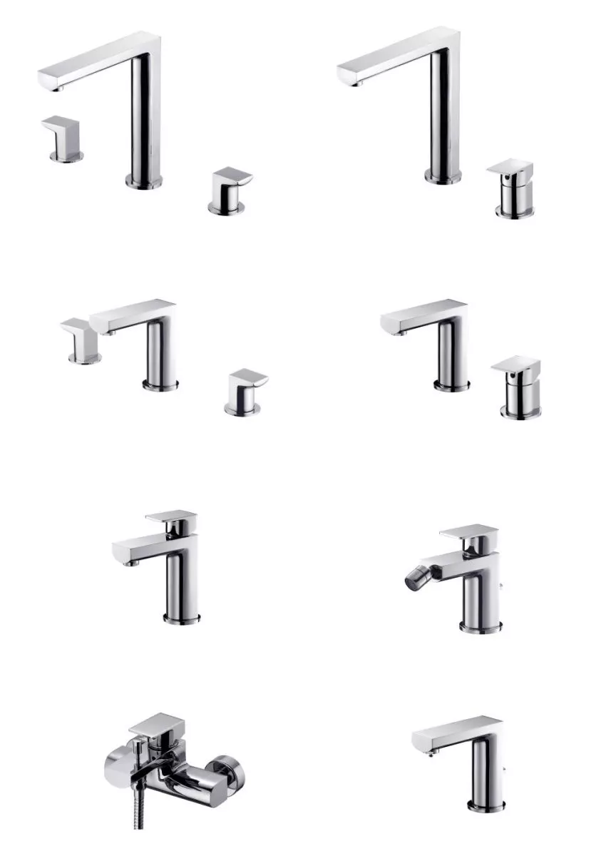 為了配合使用者的不同需求,「方圓系列」推出各種不同功能的水龍頭,有面盆龍頭、廚房龍頭、淋浴龍頭、下身盆龍頭等。冷熱水的混合方式,除了單把混合龍頭,也可以選擇獨立式開關,亦有雙把手冷熱開關,更有結合出水口的按壓式開關,多種混搭方式,讓客戶自由的搭配組合,可以更容易營造居家環境的整體性,使裝潢的風格可以統一。而模組化的設計,也可以降低生產成本,增加產能。