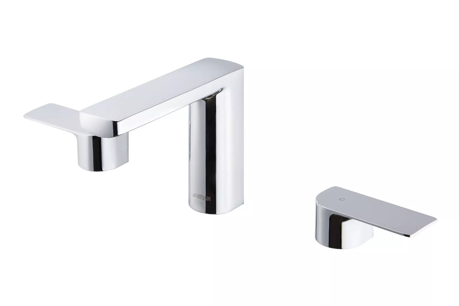 把手的外型尤其特別,一半直線一半曲線的不對稱設計,形成視覺衝突來吸引目光。然而當兩個把手同時放置於兩側,又讓整組龍頭變成對稱造型,給人平衡且穩定的感受。